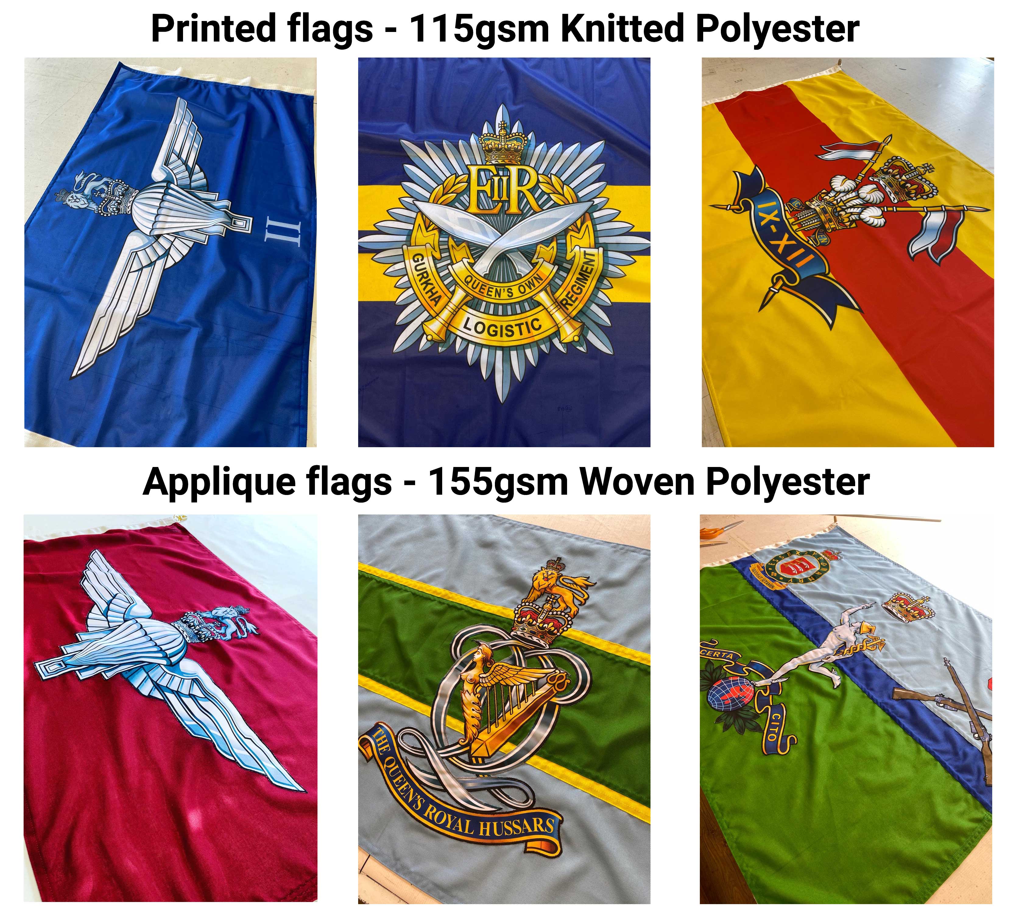 - Crest/cap badge printed, then hand stitched on to base of flag